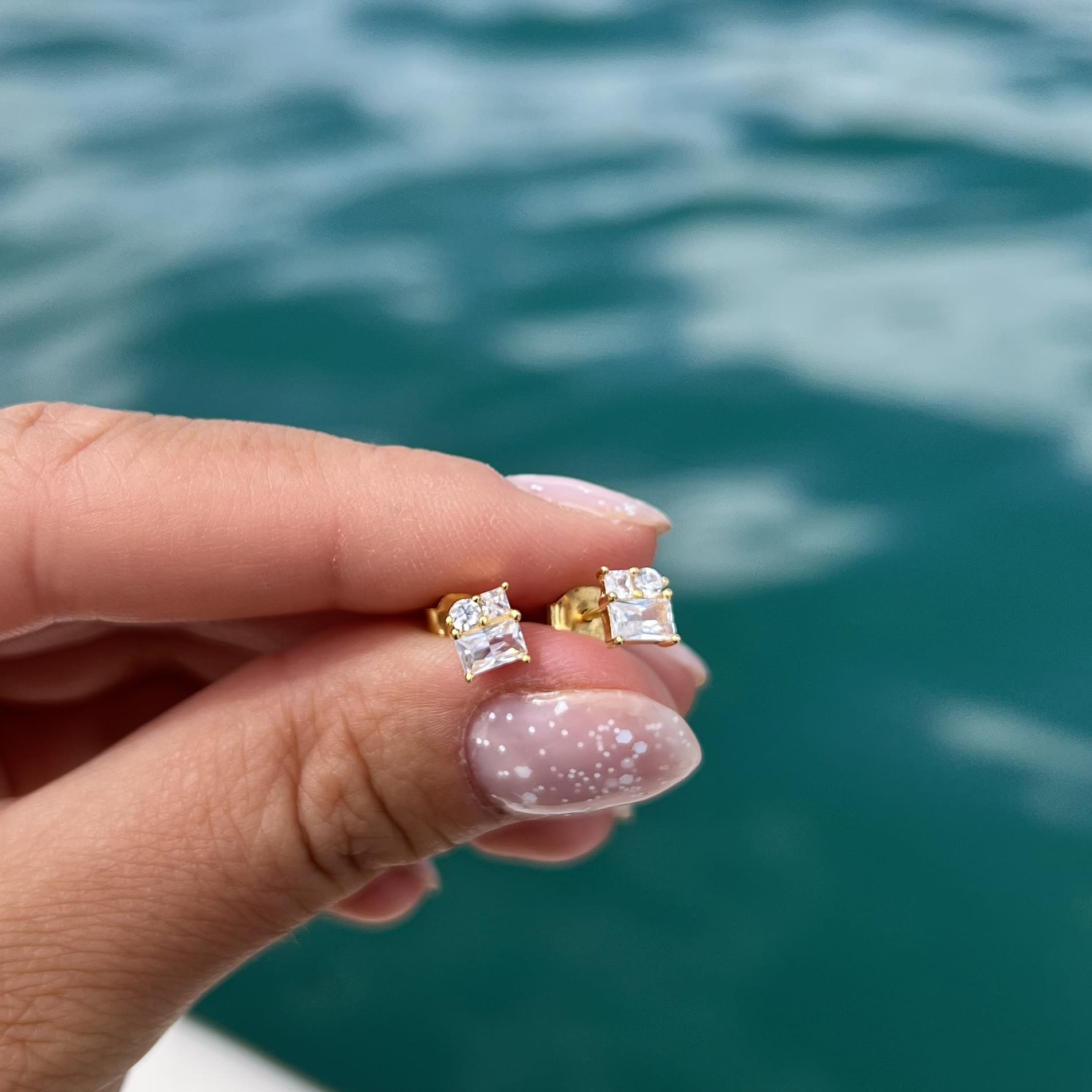 Srebrne pozłacane kolczyki z cyrkoniami mini błysk