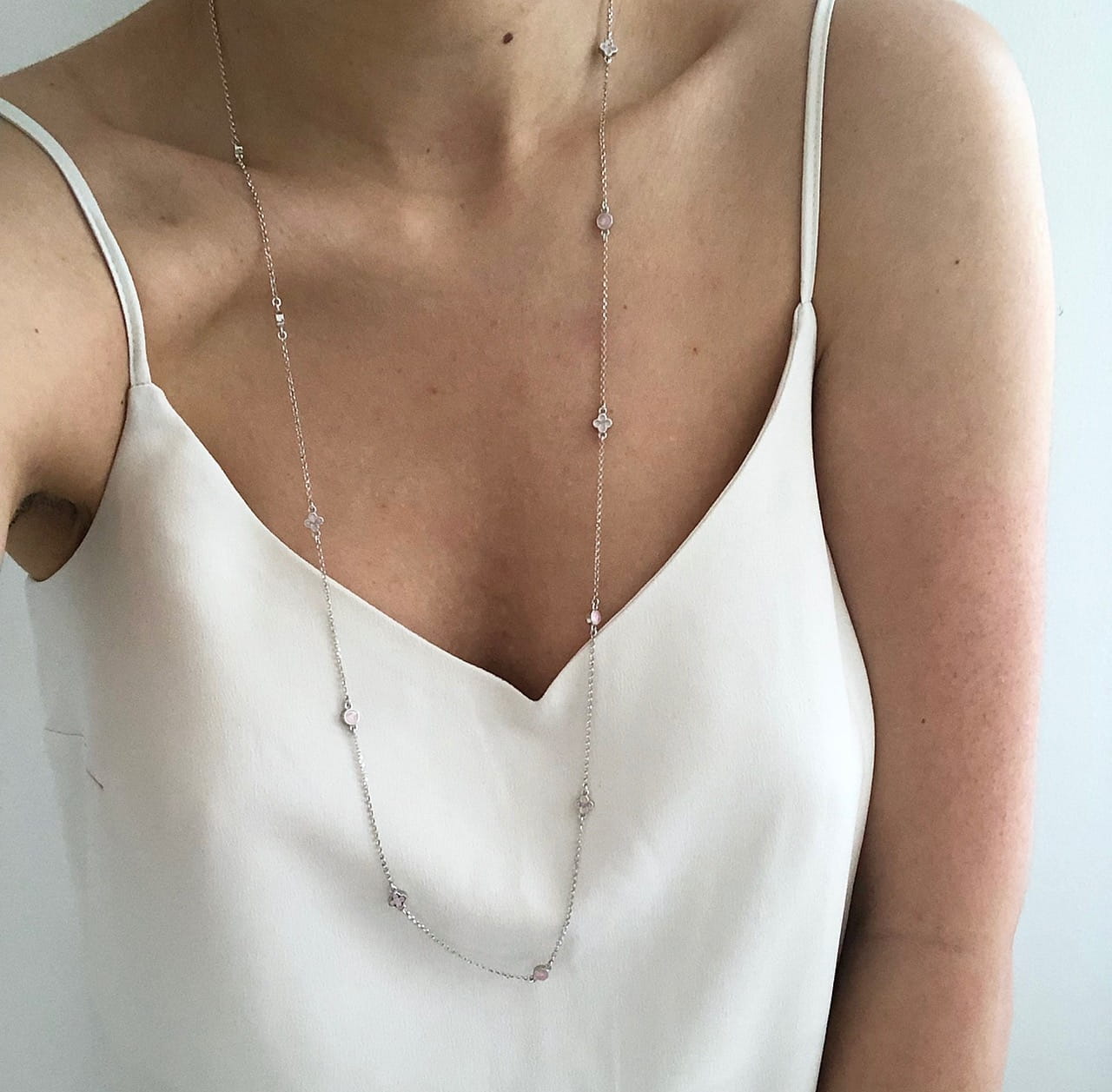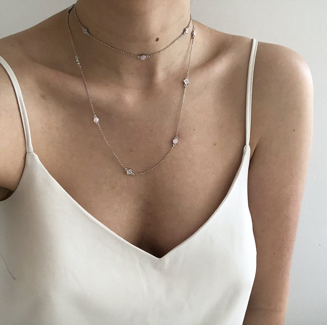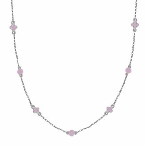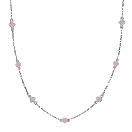 Srebrny naszyjnik długi koło i koniczyna z różową emalią