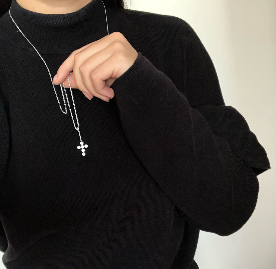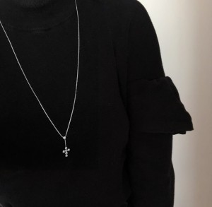 Srebrny naszyjnik krawatka z krzyżem i cyrkoniami długi