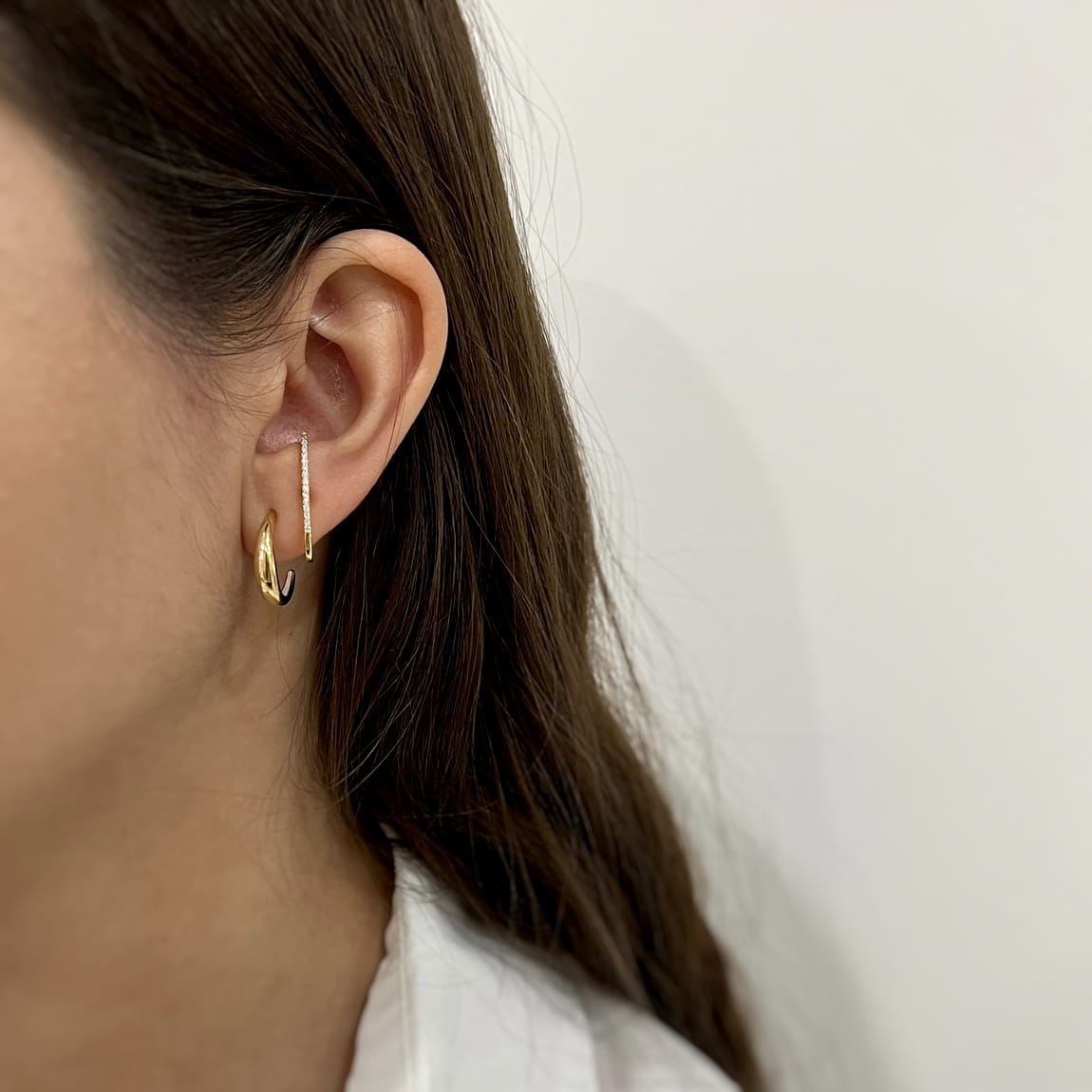 Srebrny pozłacany kolczyk NIEOCZYWISTY z cyrkoniami to unikalna biżuteria, która doda charakteru każdej stylizacji. Wykonany w całości ze srebra próby 925 i pozłacany 24-karatowym złotem, kolczyk waży ok. 0,70g. Jego długość wynosi 22 mm, co sprawia, że jest subtelny, ale zauważalny. Ozdobiony cyrkonią, kolczyk ma wyjątkowy design, który przyciąga wzrok. Produkt jest hipoalergiczny, nie zawiera niklu, co sprawia, że jest bezpieczny dla wrażliwej skóry. Cena obejmuje jedną sztukę. Biżuteria jest nowa, posiada metkę i jest zapakowana w ozdobne pudełko oraz torebkę – idealna na prezent.
