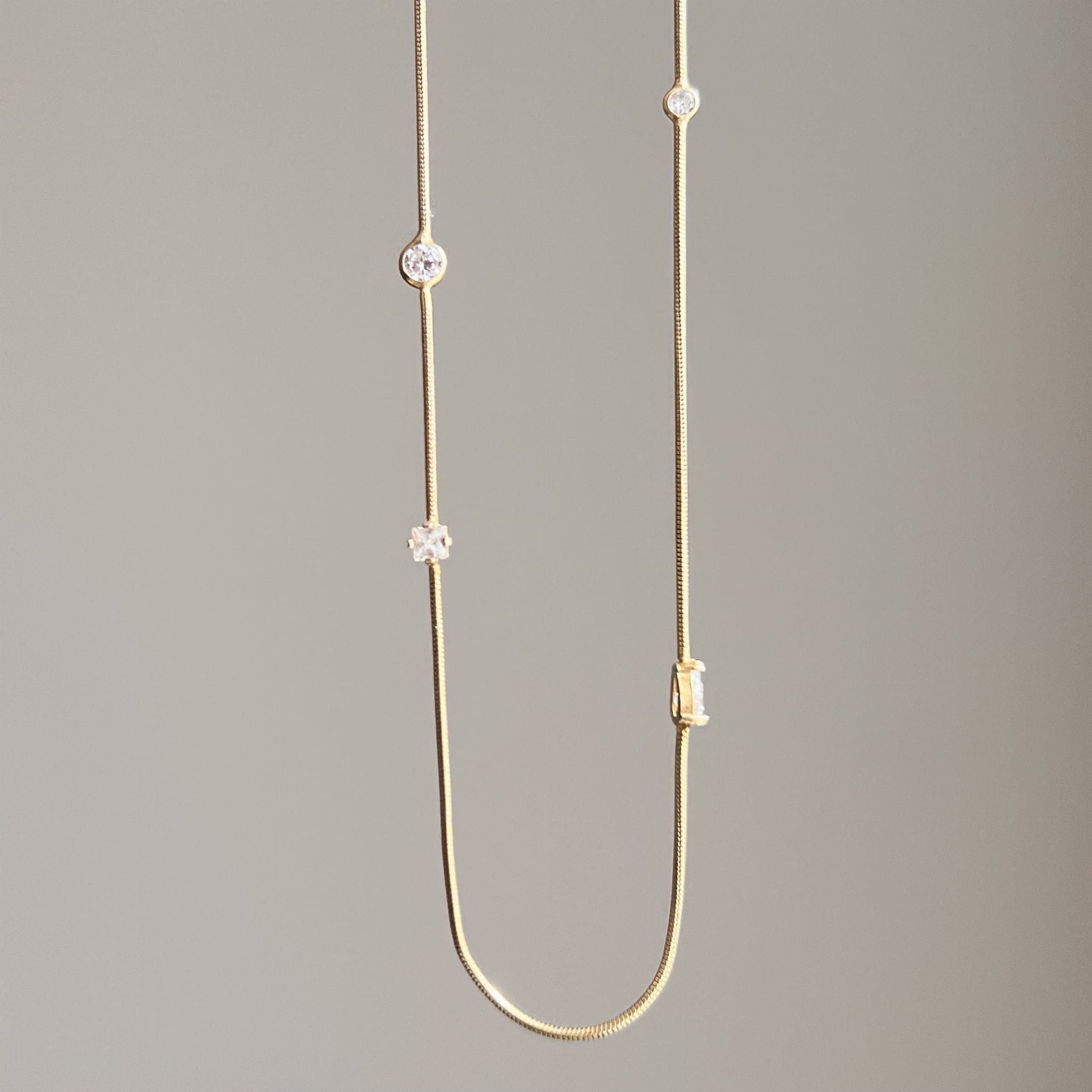Srebrny pozłacany naszyjnik choker z cyrkoniami TREND