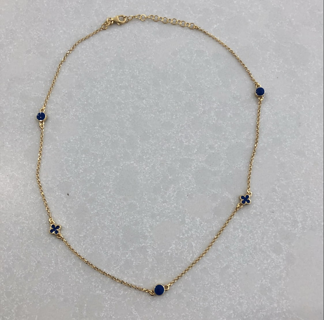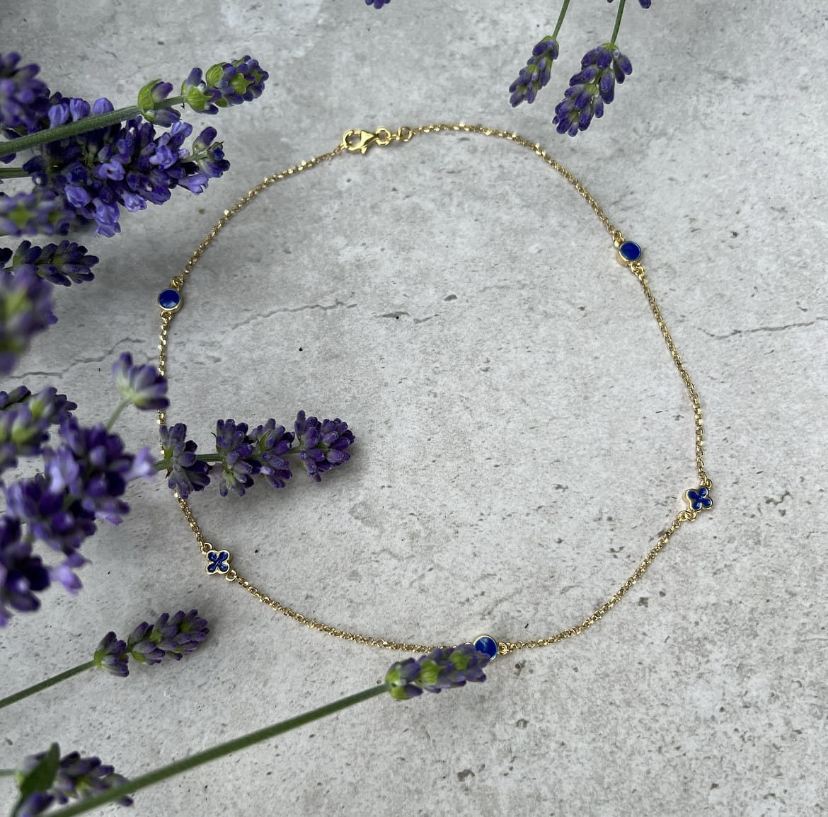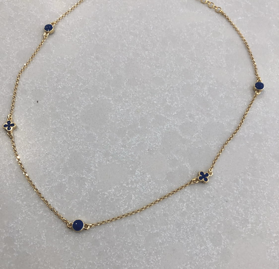 Srebrny pozłacany naszyjnik choker z wisiorkami granatowa emalia