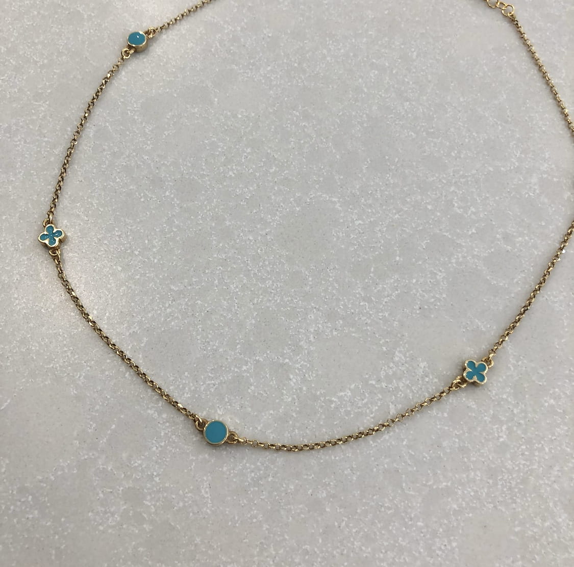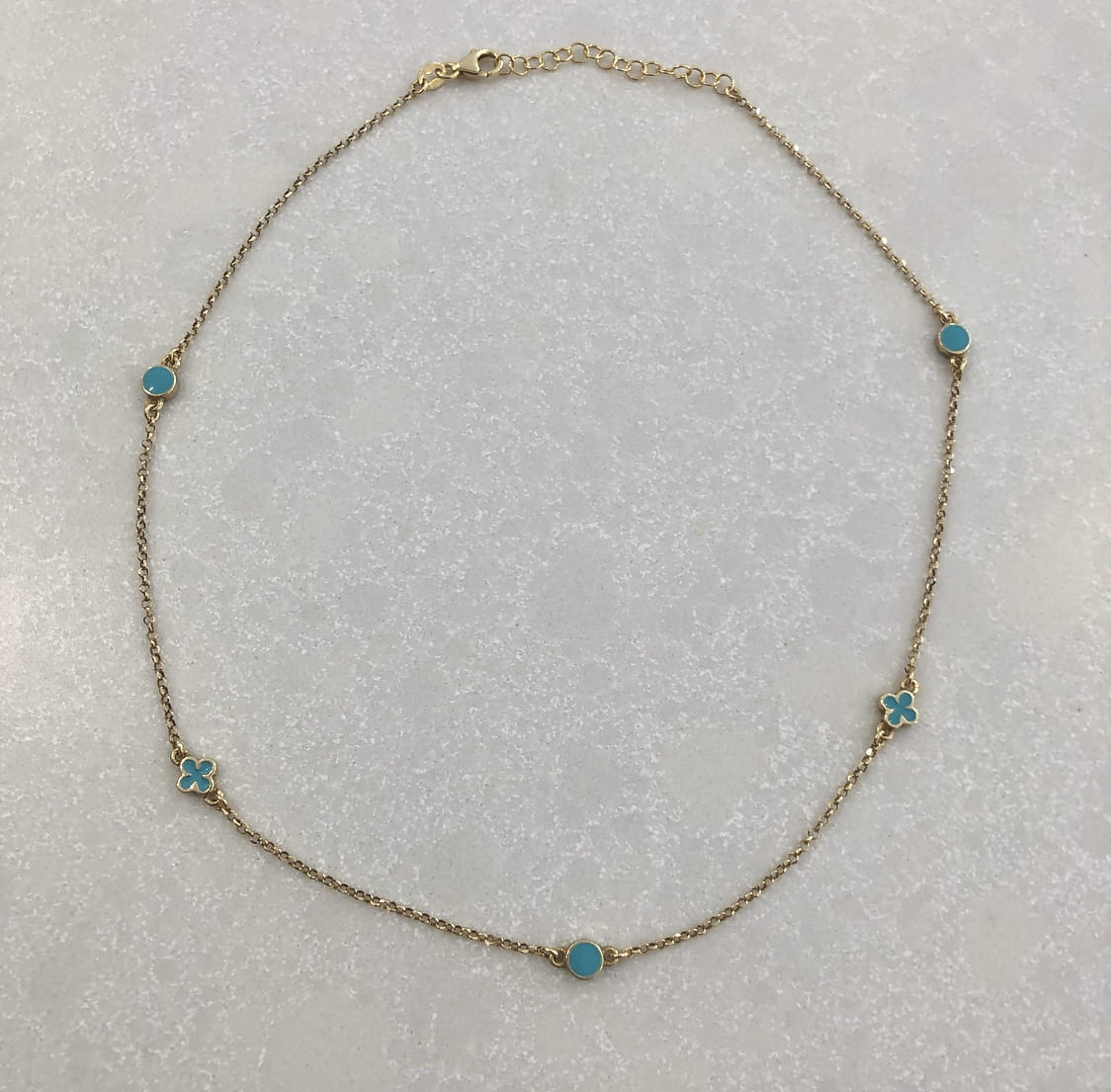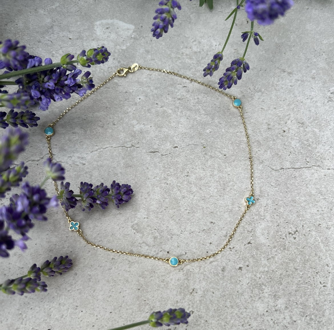 Srebrny pozłacany naszyjnik choker z wisiorkami niebieska emalia