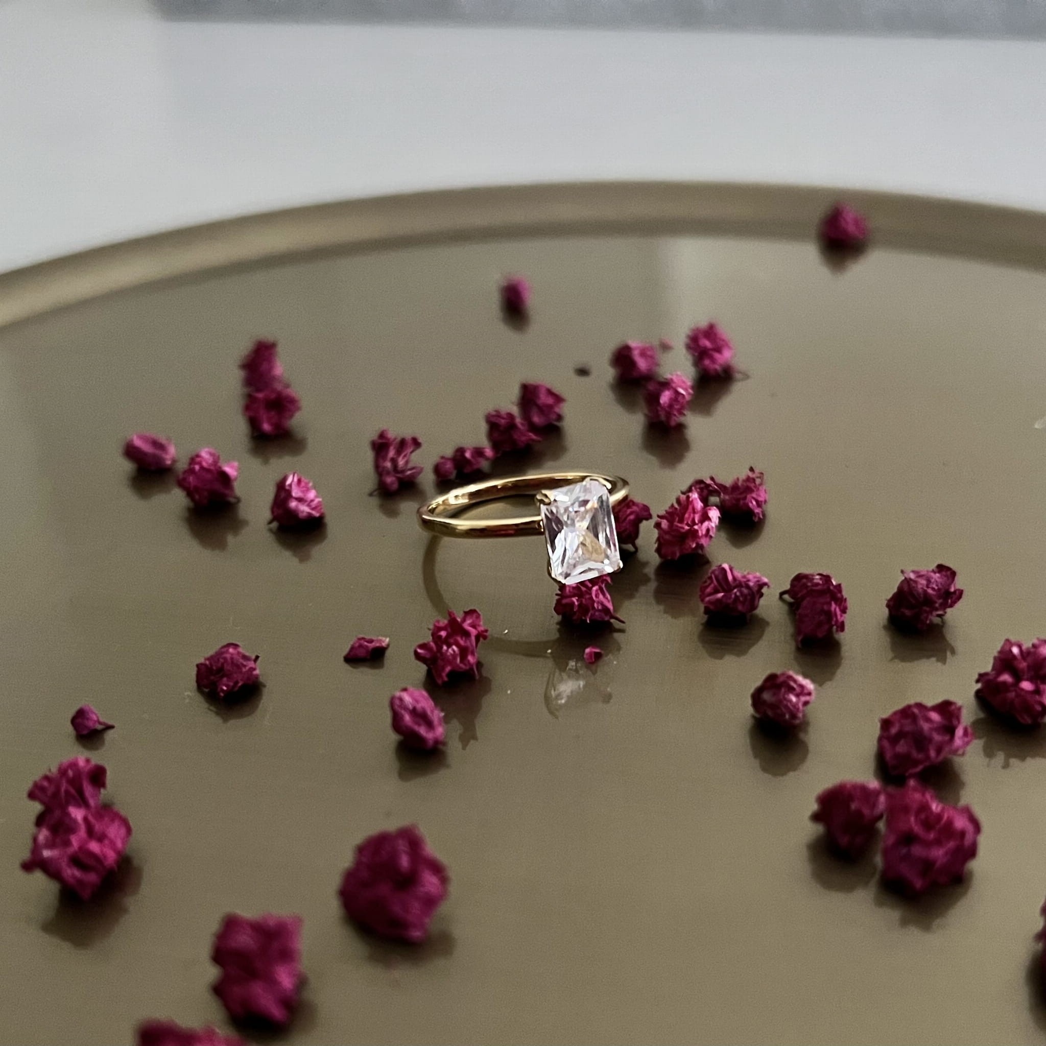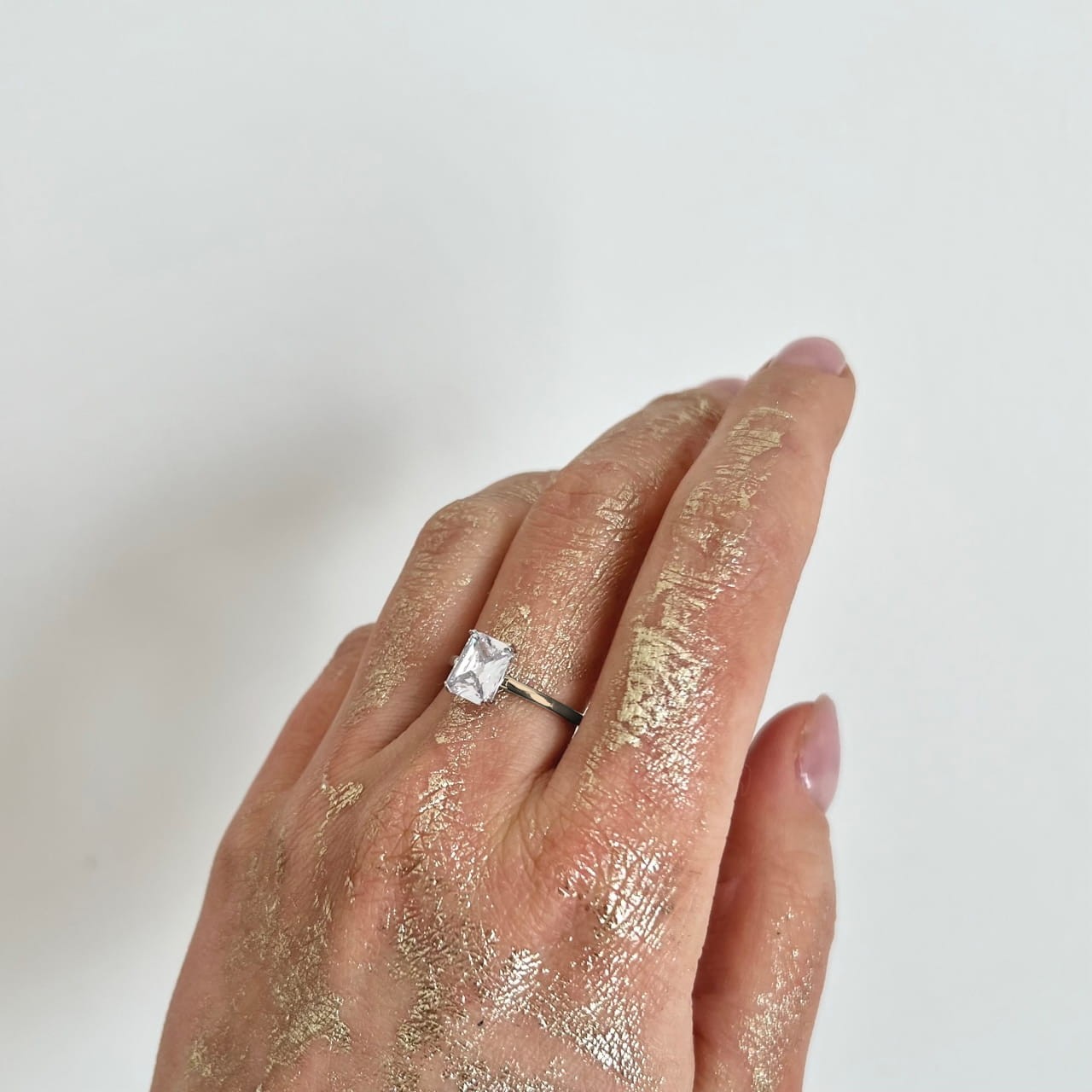Srebrny pozłacany pierścionek KWADRATOWY BŁYSK wykonany w całości ze srebrna