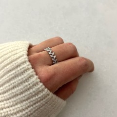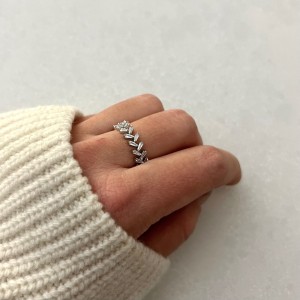 Srebrny pierścionek obrączka z cyrkoniami kłos