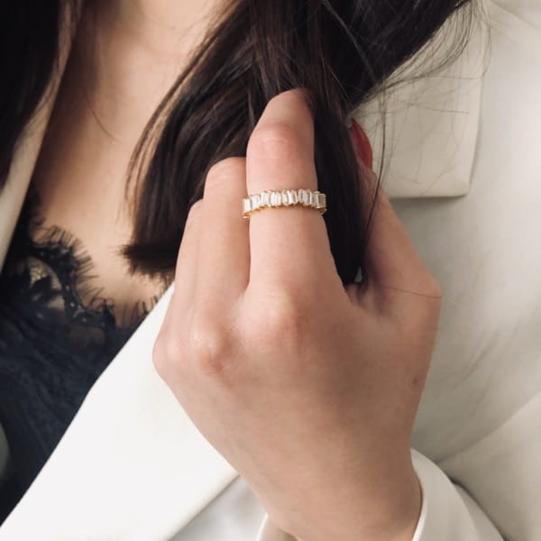 Srebrny pozłacany pierścionek obrączka z cyrkoniami wykonany w całości ze srebrna