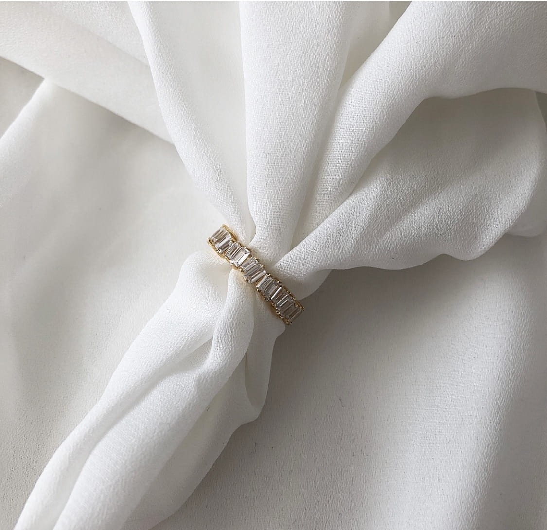 Srebrny pozłacany pierścionek obrączka z cyrkoniami