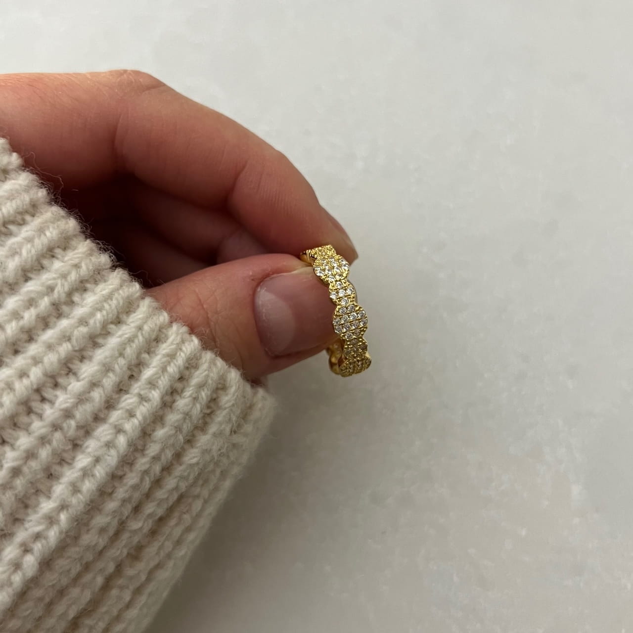 Srebrny pozłacany pierścionek obrączka z cyrkoniami wykonany w całości ze srebrna