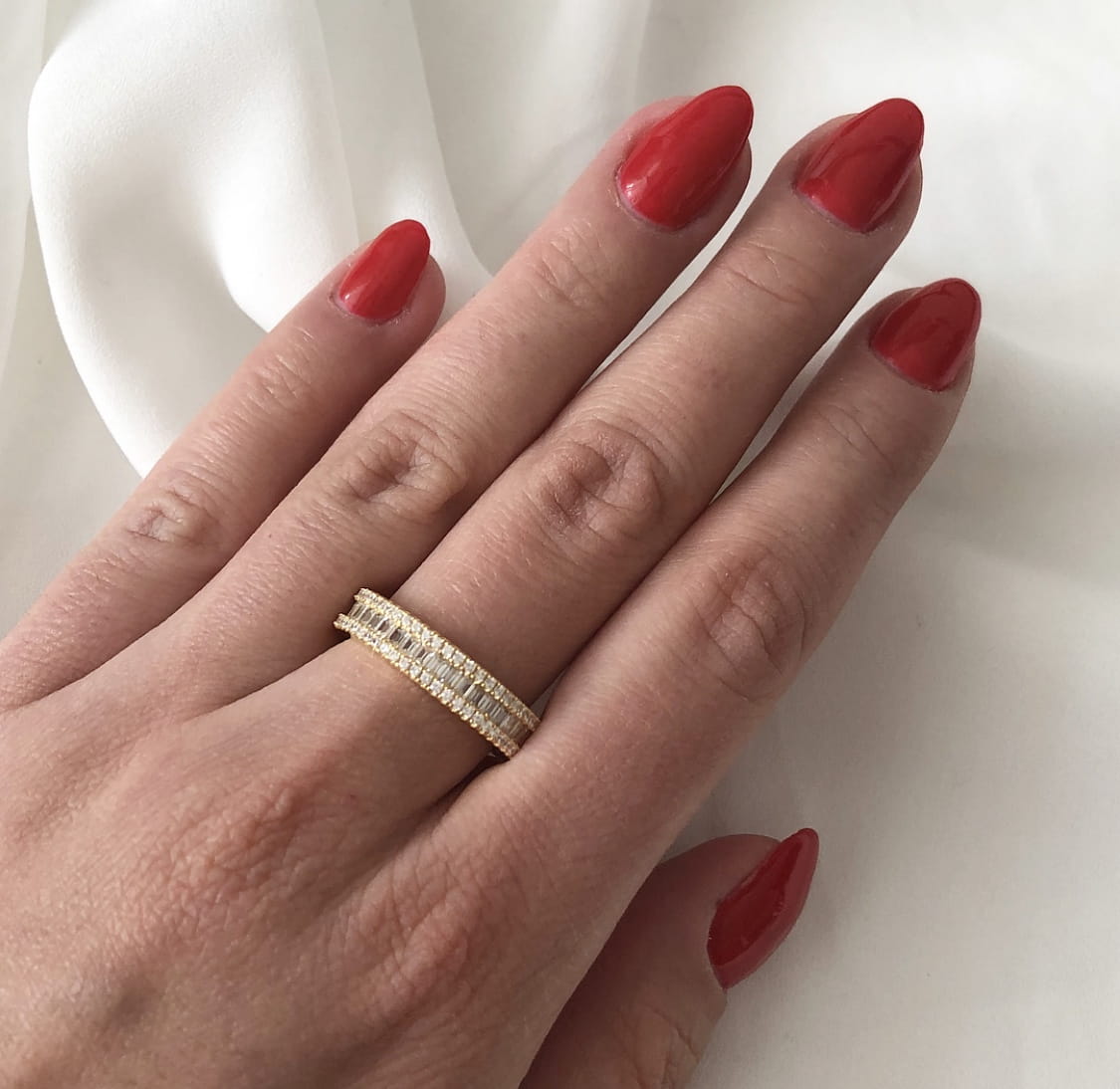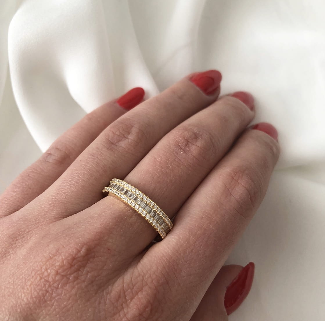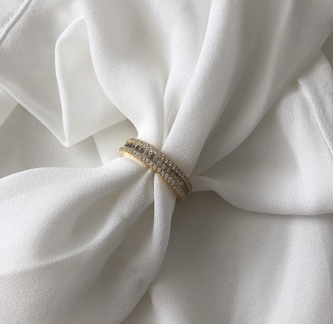 Srebrny pozłacany pierścionek obrączka z cyrkoniami wykonany w całości ze srebrna