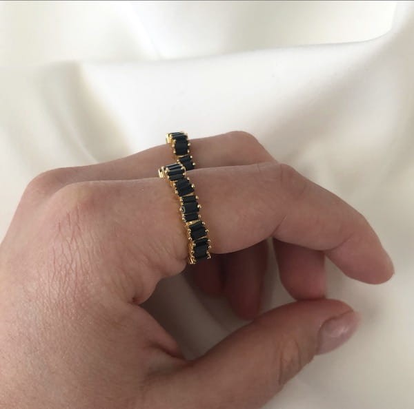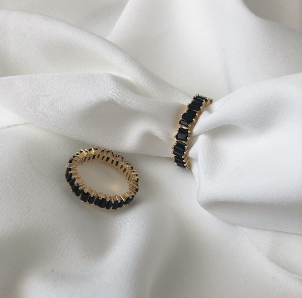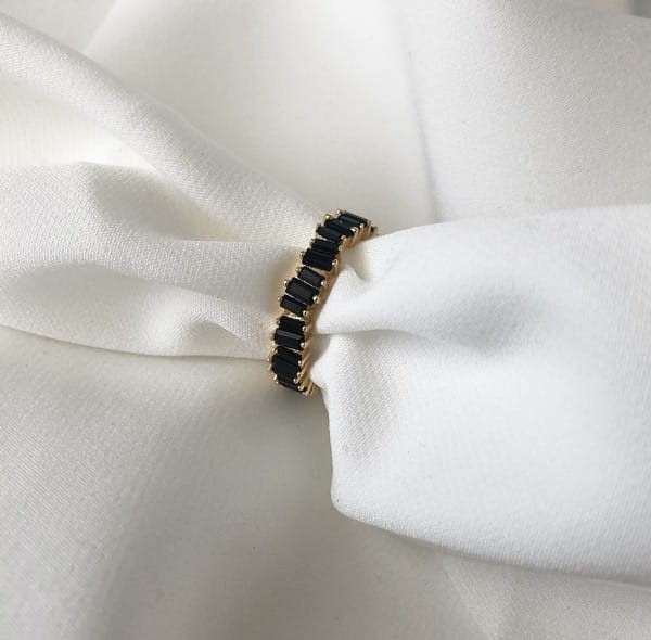 Srebrny pozłacany pierścionek obrączka z czarnymi cyrkoniami