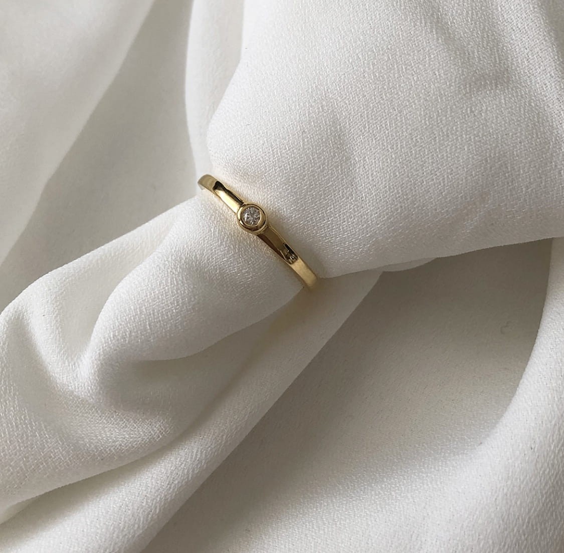 Srebrny pozłacany pierścionek z cyrkonią wykonany w całości ze srebrna