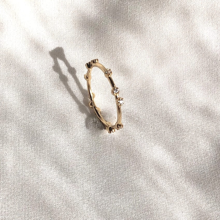 Srebrny pozłacany pierścionek z cyrkoniami SOREL