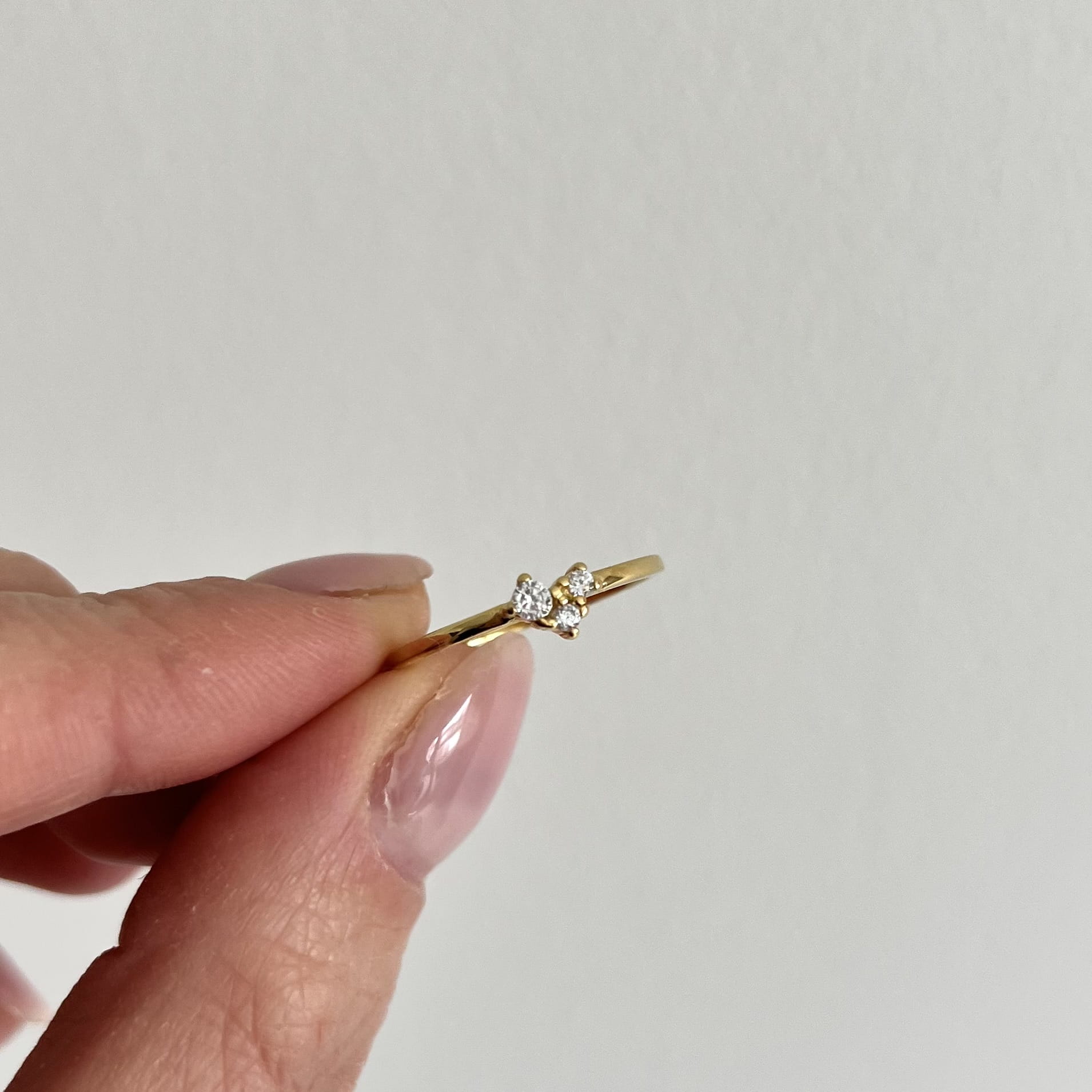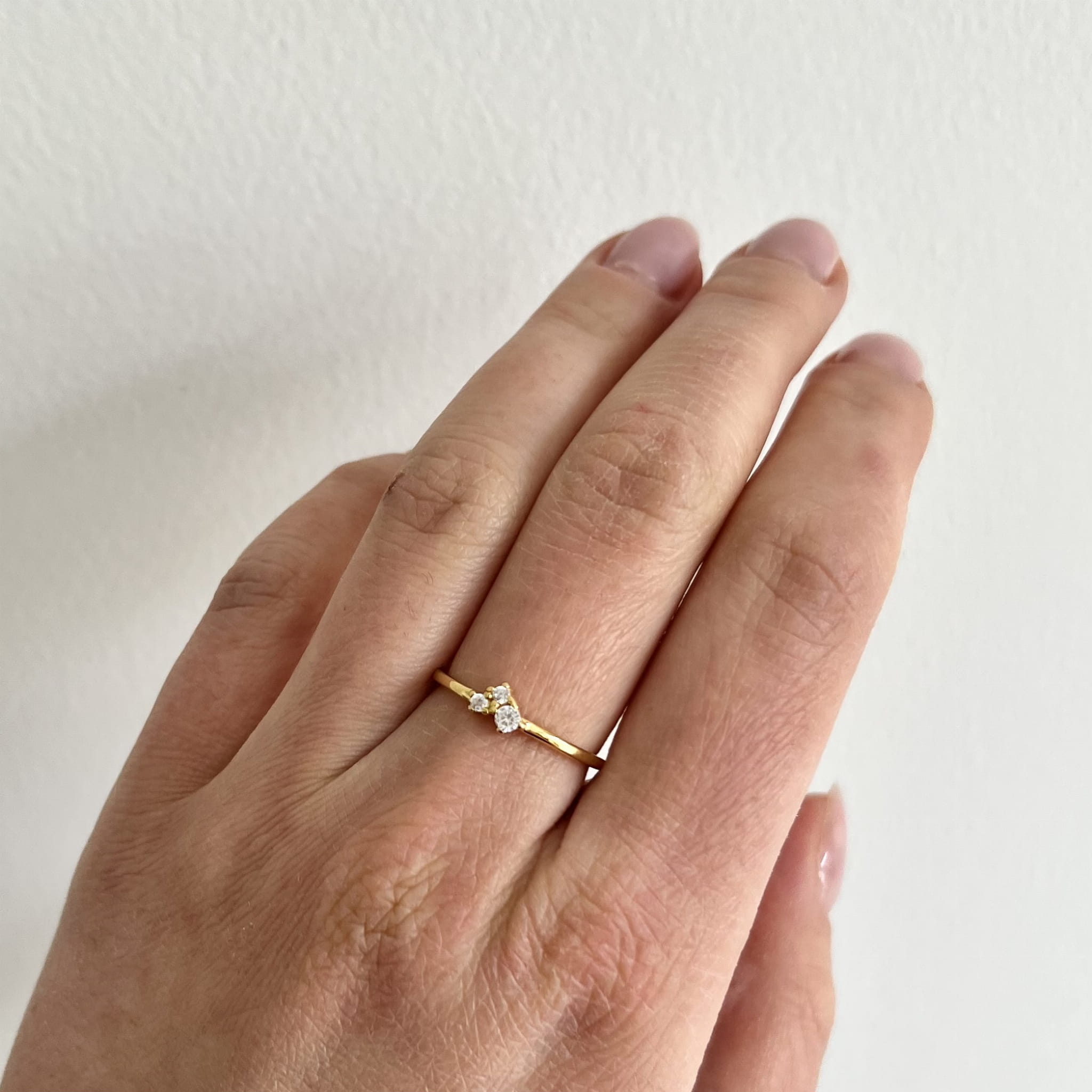 Srebrny pozłacany pierścionek z cyrkoniami delikatny